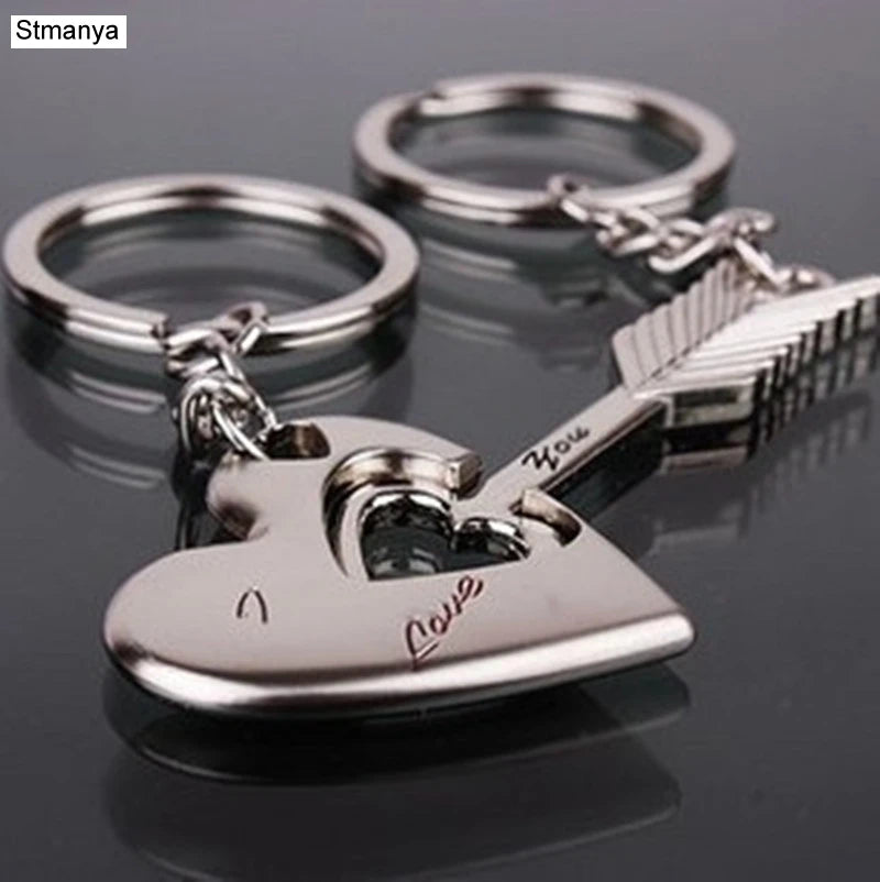 New Trendy Hot Sale one Pair Key Chain Alloy Arrow Bow Love Keyrings Key Chains Lovers Ring Couples keychain for Gift 17343